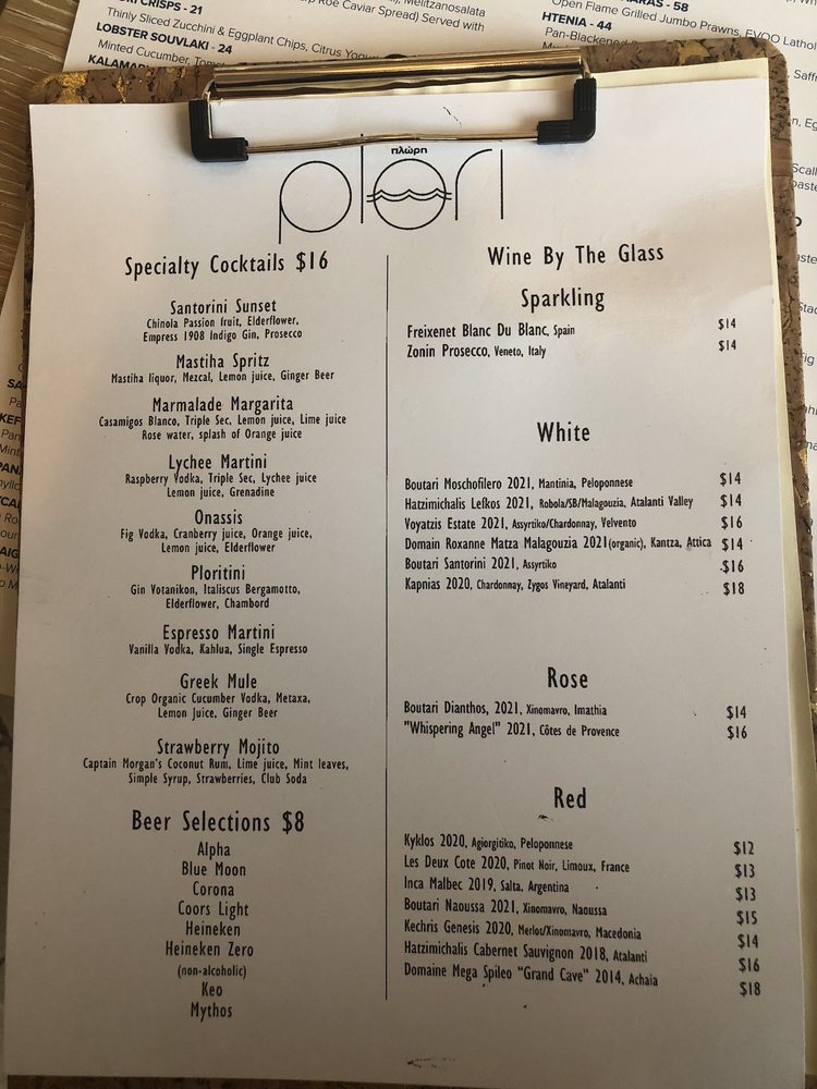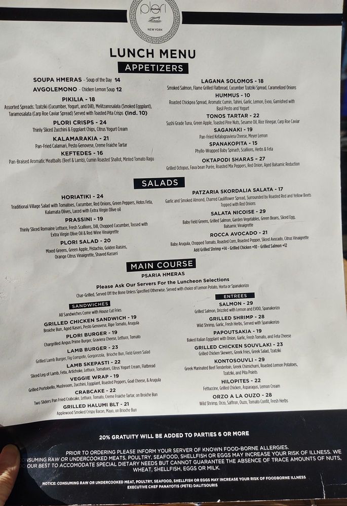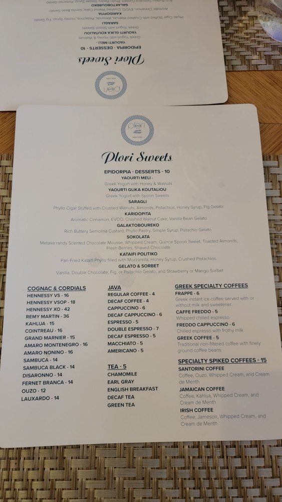 Plori Restaurant in Carle Place, NY offers a Greek-Mediterranean-Sandwich menu featuring delectable dishes like Pikilia Assorted spreads, Kalamari Ouzato, and Horiatiki Village salad. The classy, upscale ambiance is perfect for groups and dinner outings, with valet parking available. Customers rave about the attentive service and delicious food, with highlights including Plori crisps, fried calamari, and grilled octopus. The restaurant's decor exudes a modern Greek feel, creating a welcoming atmosphere. Although some guests mention the need for more hummus pita and restroom cleanliness, the overall dining experience at Plori is top-notch. Whether you're a fan of Greek cuisine or looking for a new upscale dining spot, Plori Restaurant is a must-visit destination.